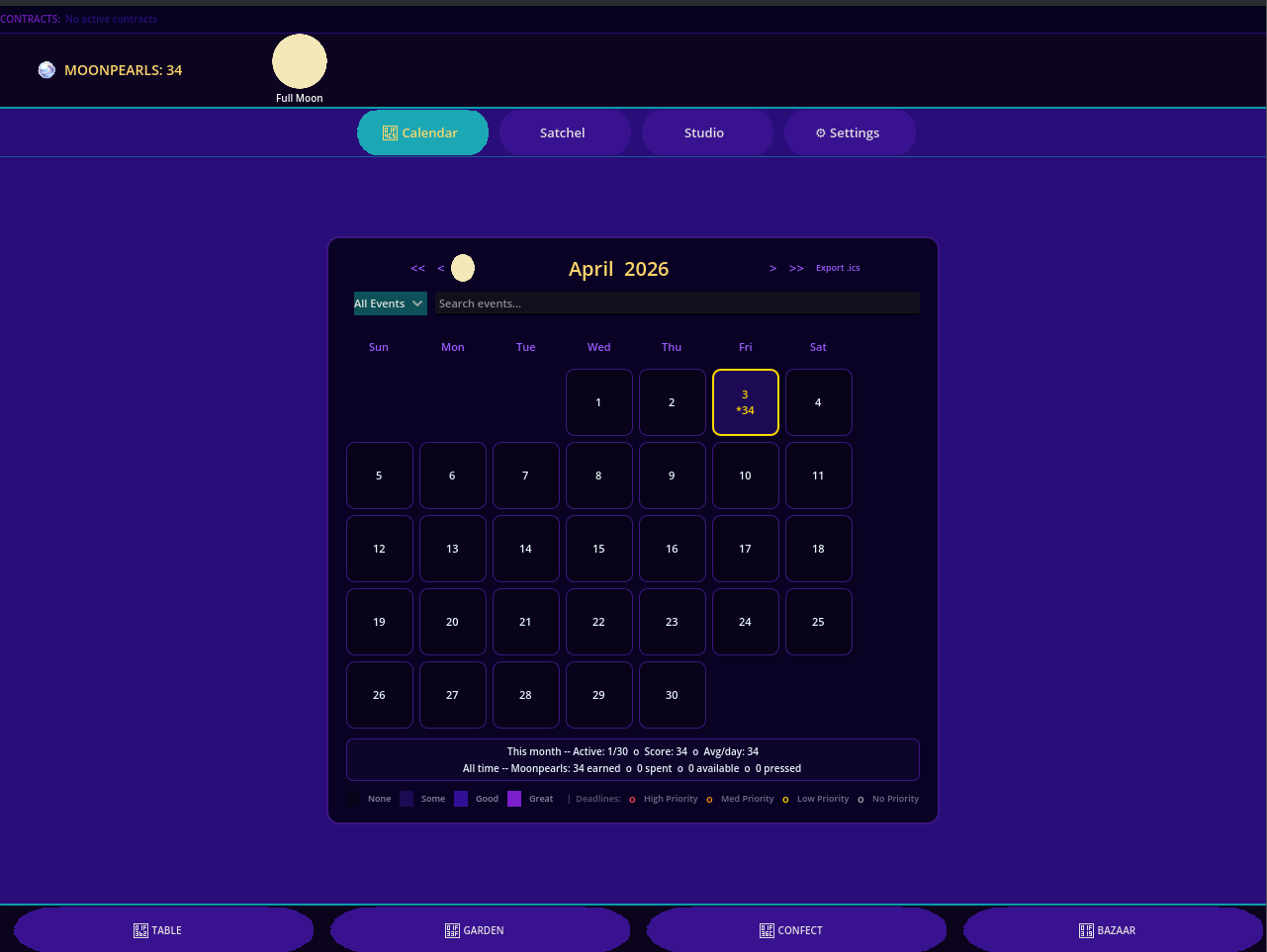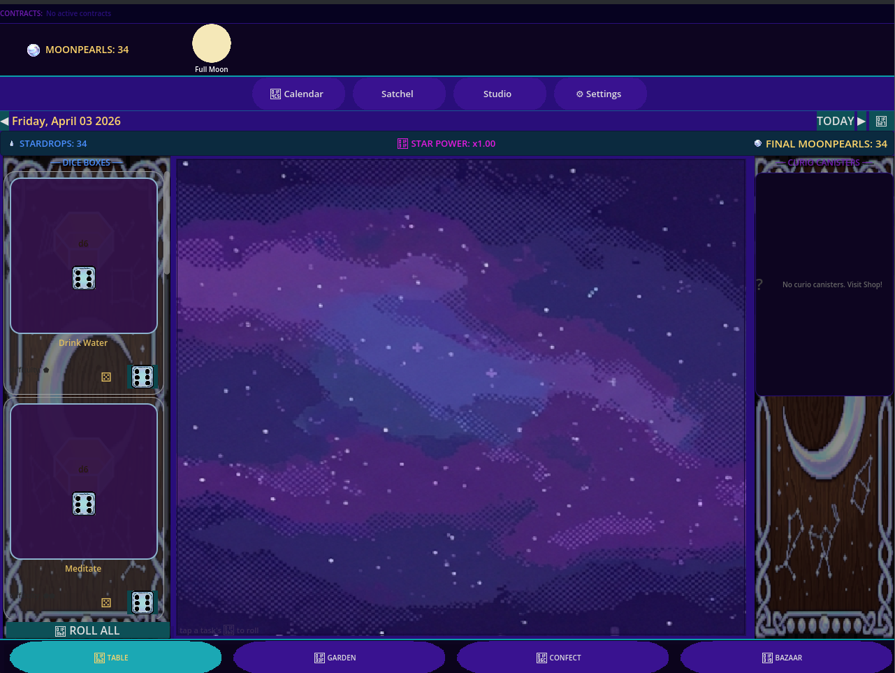 Moonseed bridges the gap between your to-do list and tactile game world. Complete real-world focus sessions or tasks to generate Moondrops. Bring them to the table, roll the dice, and watch your cavern garden bloom.